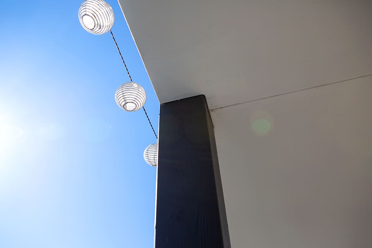 A beálló kiegészítő építménye egy kis tárolóhelyiség, mely anyagában és megjelenésében is jól illeszkedik környezetéhez. A fa szerkezetes kocsibeálló az antracit szerkezettel és a fehér falapos burkolással harmonikusan illeszkedik a házhoz, illetve a már meglévő kerítéshez, amely fehérre vakolt, szürkére festett fa lécekkel van ellátva. Hogy tovább emeljük a kényelmet és a funkcionalitást, a tetőbe süllyesztett spotlámpákat telepítettünk, így minden adott egy biztonságos és kényelmes kocsibeállóhoz.