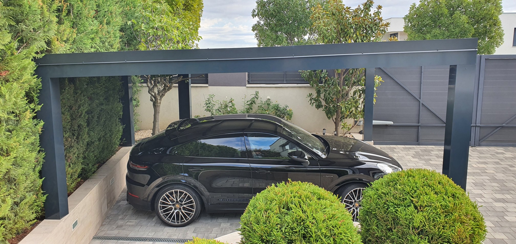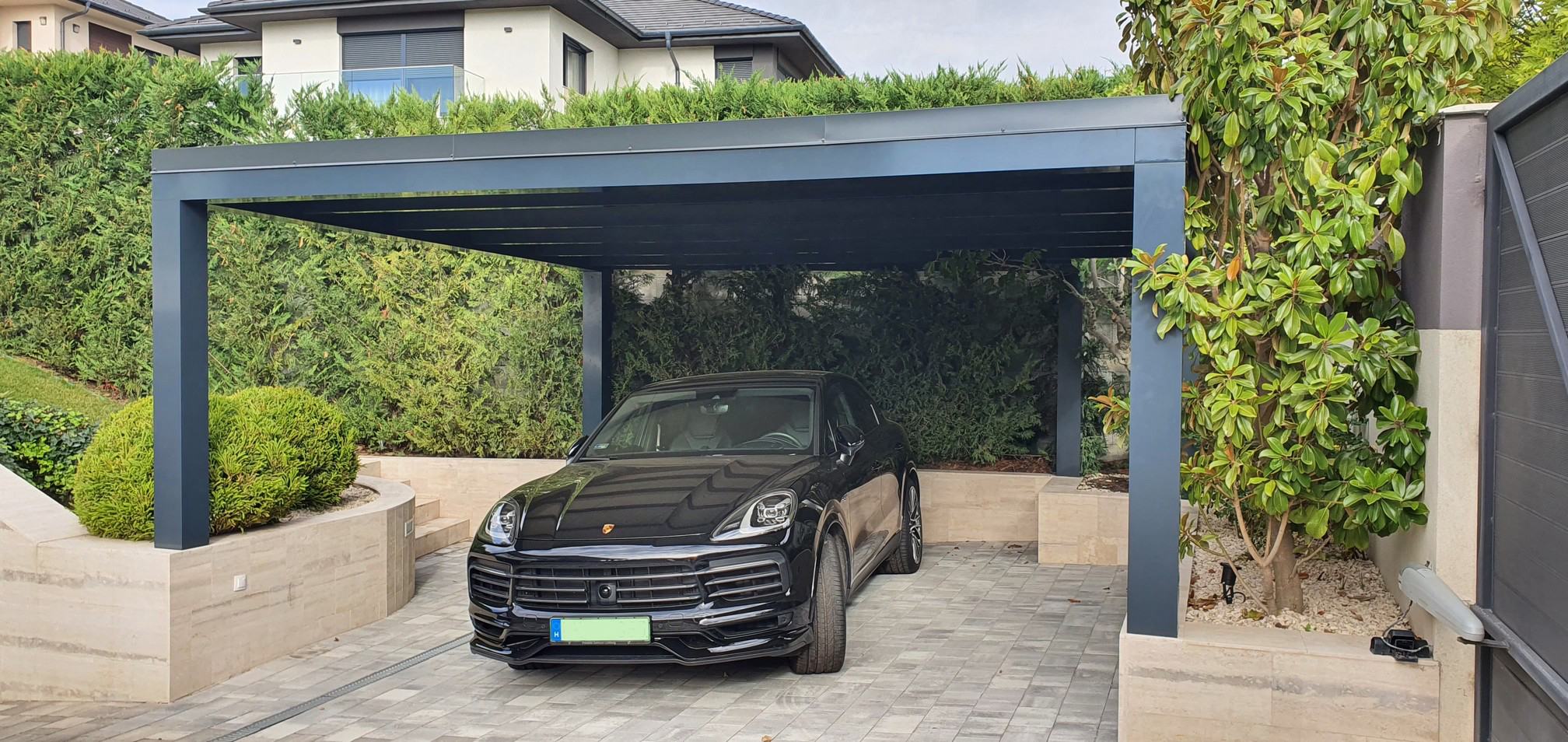 Legújabb, egyedi tervezésű kocsibeálló munkánk alumínum szerkezettel készült. A robosztus alumínium zártszelvények masszív megjelenést kölcsönöznek az autóbeállónak és ugyanakkor az oszlopok éles kontúrjai modern hatást keltenek. A kocsibeálló megalkotásakor egy olyan cél vezérelt minket, amely mind a funkcionalitást, mind a dizájnt egyesíti. Az eredmény egy luxusautó méltó otthona, amely nem csak védelmet nyújt, hanem magas minőségű és esztétikus kiegészítője a környezetnek.