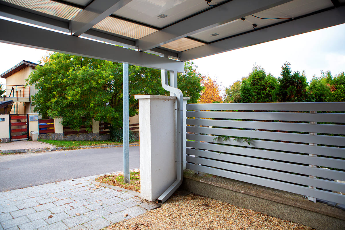 Ha abban gondolkodunk, hogy szeretnénk élni a napenergia adta lehetőségekkel, mindig kézenfekvő megoldás, ha például kocsibeállónk fedését használjuk erre a célra. Amikor napelemeket használunk kocsibeállónk fedésére, nincs szükség külön egyéb fedésre, mert egy speciális illesztési technikának köszönhetően szakembereink úgy installálják a paneleket, hogy garantáltan nem fog beszivárogni, csöpögni a csapadékvíz az elemek között. Így teljes mértékben használhatjuk tetőként, kis dőlésszöggel biztosítva, hogy az esővíz egy általunk épített négyeztes csatornába vezesse a vizet.