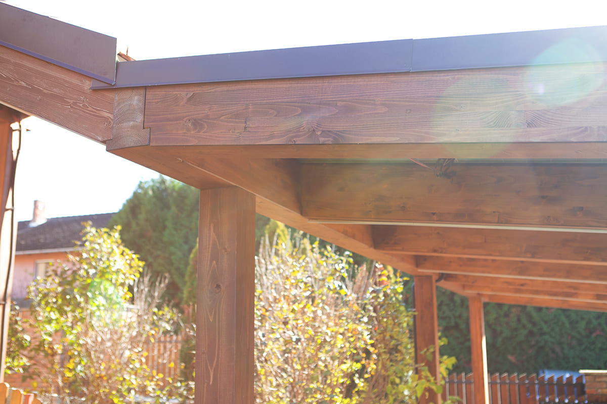 Egy napelemmel fedett dupla kocsibeálló tervezésénél kulcsfontosságú a szerkezet stabilitása. A tetőre helyezett napelemek súlya, a széles fesztáv, valamint a kapcsolódó elemek mind extra terhelést jelentenek. Ezért döntöttünk a rétegragasztott fa használata mellett, amely nemcsak esztétikus, hanem kiváló teherbírású anyag.