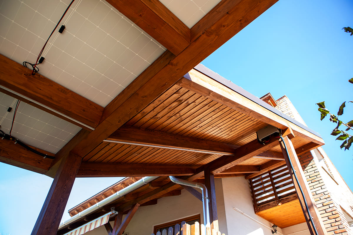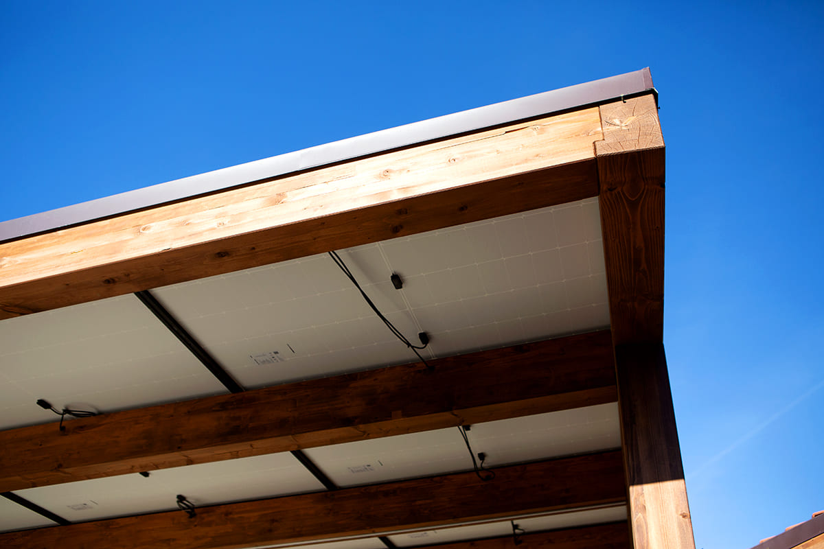 Rétegragasztott fa szerkezet - stabilitás a napelemmel fedett dupla kocsibeállóhoz