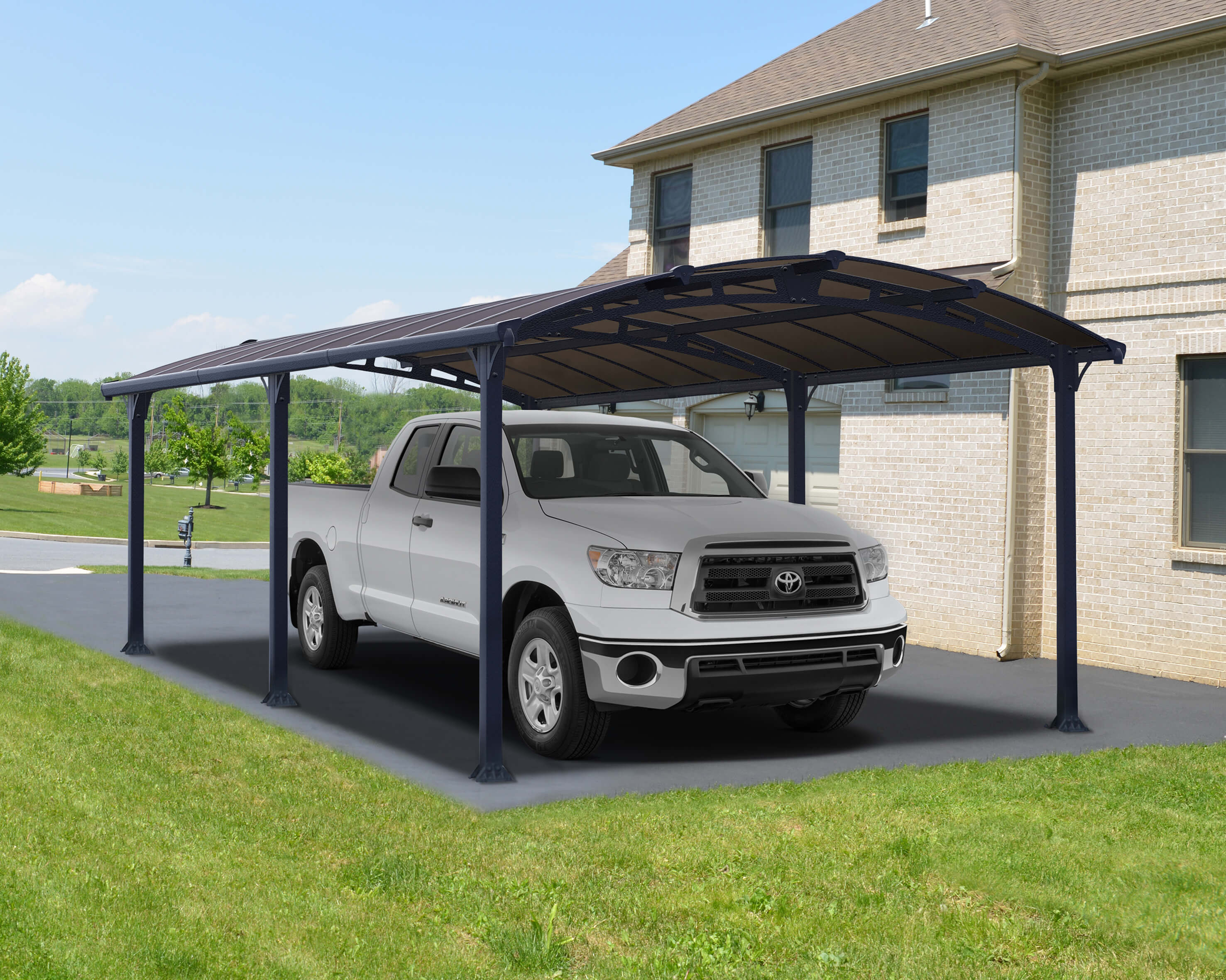 A Parlam ARCADIA nyitott kocsibeálló típusok mindkét oldalon rendelkeznek tartó oszlopokkal. A szerkezet rozsdaálló, porszórt kivitelű teherbíró alumíniumból és lézervágott galvanizált acélból készült modern antracit színben. Hatékonyan védi az autót a hótól, esőtől, jégtől, a káros UV sugaraktól és a lehulló levelektől.