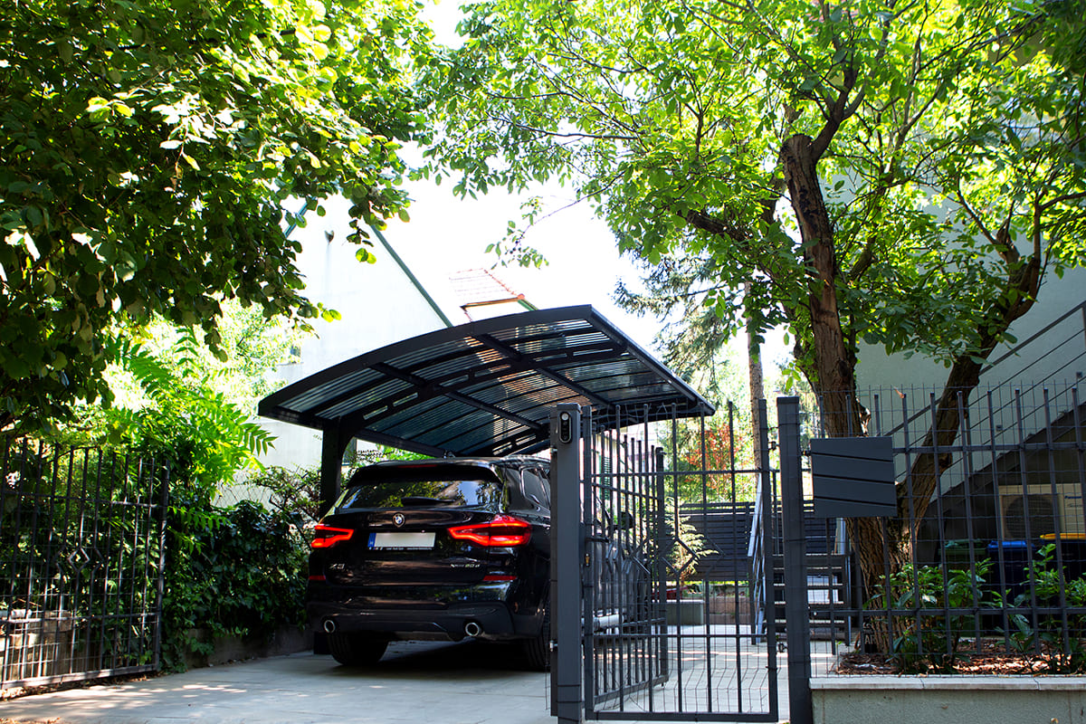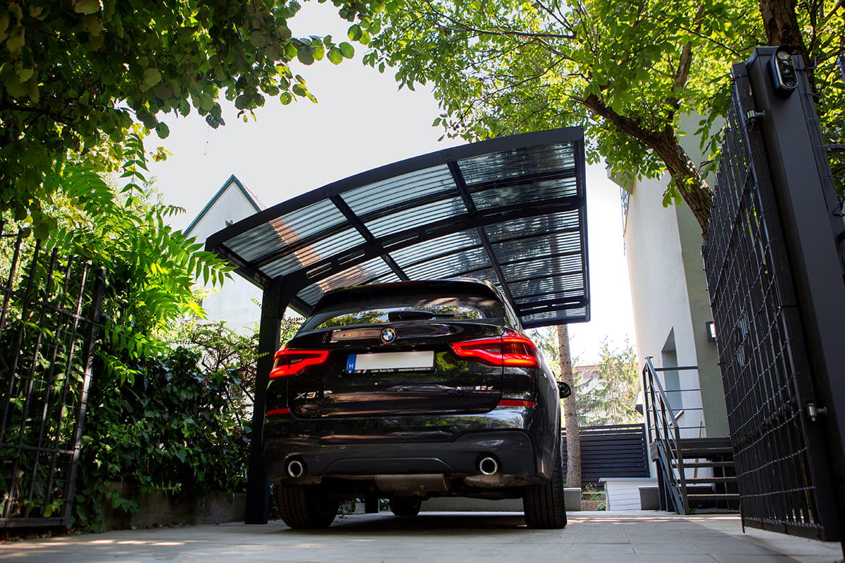 - Esztétikus megjelenés: Az antracit színű, modern kialakítású kocsibeálló tökéletesen illeszkedik a mai építészeti trendekhez.