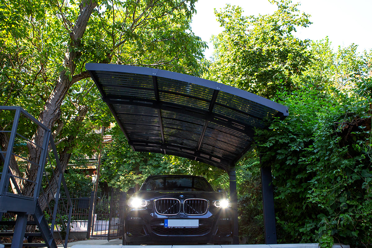- UV-védett tetőpanel: A polikarbonát fedés megóvja autóját a káros UV sugárzástól, miközben természetes fényt enged át.