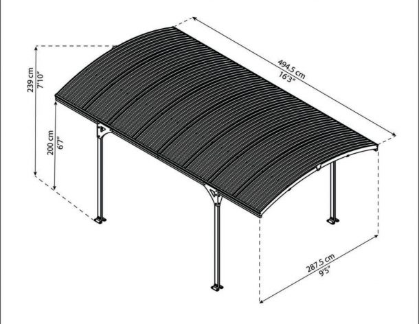 Palram Atlas antracit színű kocsibeálló 01A szerkezet rendkívül tartós, rozsdaálló alumínium kerettel és lézerrel vágott horganyzott acél csatlakozókkal készül. Nem igényel karbantartást. A tartó elemek rozsdásodásmentesek, a felületek minőségi gyári porszórt festést kapnak és úgy tervezték, hogy ellenálljon a szélsőséges időjárási viszonyoknak.