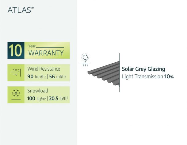 A Parlam ATLAS 5000 nyitott kocsibeálló típusok mindkét oldalon rendelkeznek tartó oszlopokkal. A szerkezet rozsdaálló, porszórt kivitelű teherbíró alumíniumból és lézervágott galvanizált acélból készült modern antracit színben. Hatékonyan védi az autót a hótól, esőtől, jégtől, a káros UV sugaraktól és a lehulló levelektől.