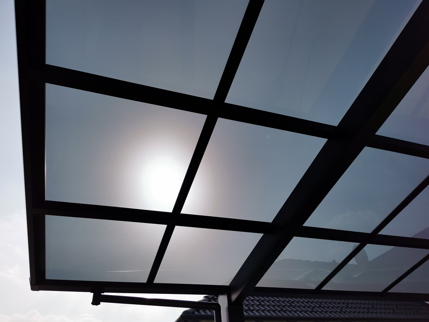 A fedés füst színű tömör polikarbonát lemezzel készül, amely 100% UV védelemmel és 81% infravörös sugárvédelemmel rendelkezik.