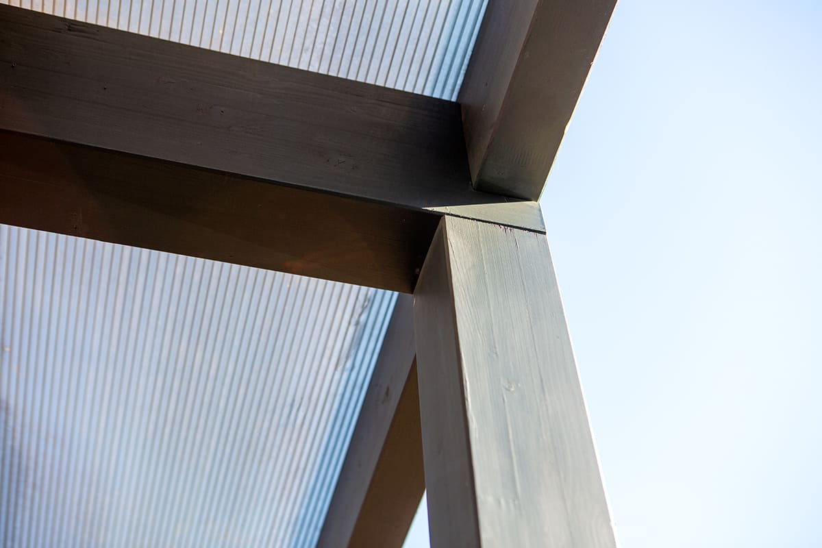 Erős és esztétikus rétegragasztott fa szerkezet antracit festéssel