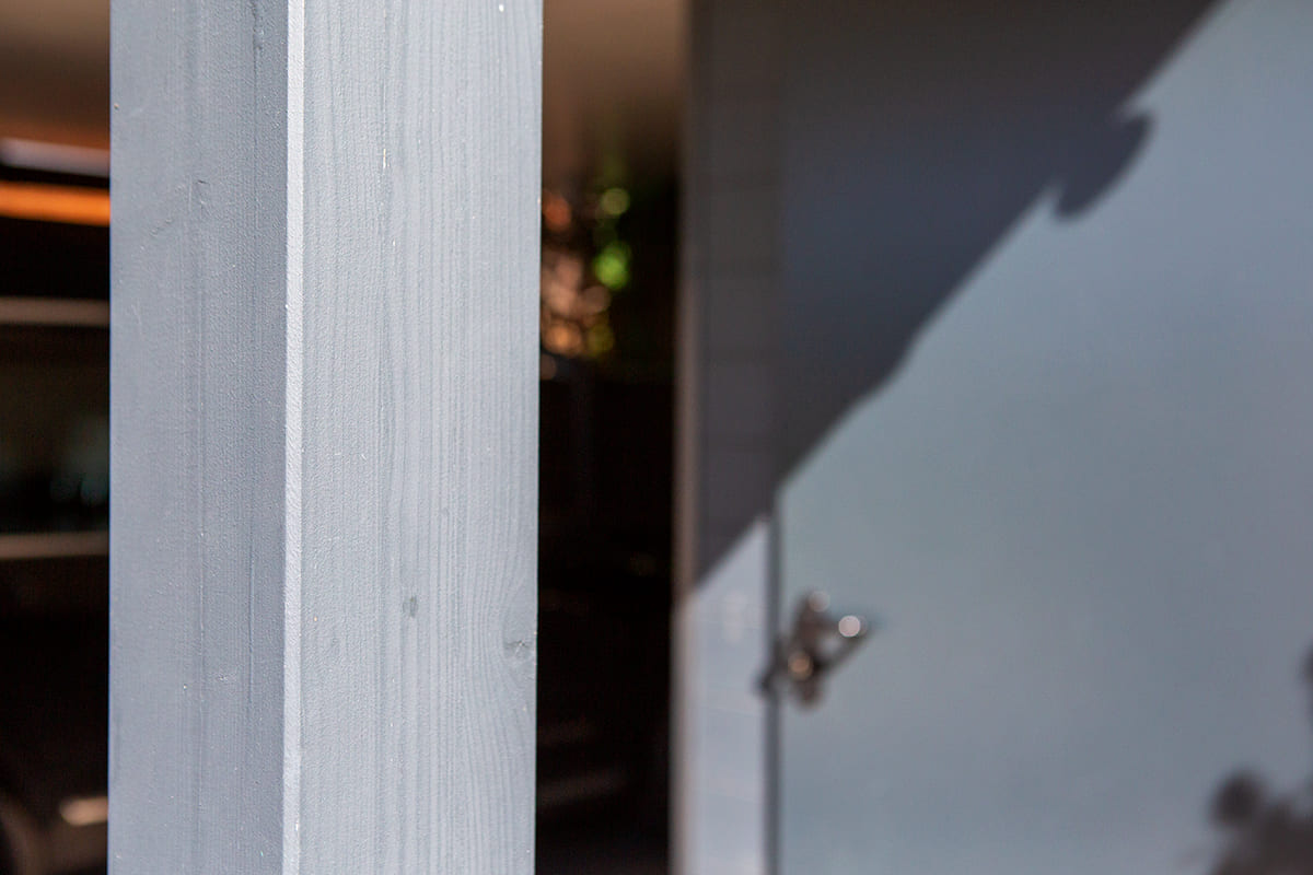 A beálló kiegészítő építménye egy kis tárolóhelyiség, mely anyagában és megjelenésében is jól illeszkedik környezetéhez. A fa szerkezetes kocsibeálló az antracit szerkezettel és a fehér falapos burkolással harmonikusan illeszkedik a házhoz, illetve a már meglévő kerítéshez, amely fehérre vakolt, szürkére festett fa lécekkel van ellátva. Hogy tovább emeljük a kényelmet és a funkcionalitást, a tetőbe süllyesztett spotlámpákat telepítettünk, így minden adott egy biztonságos és kényelmes kocsibeállóhoz.