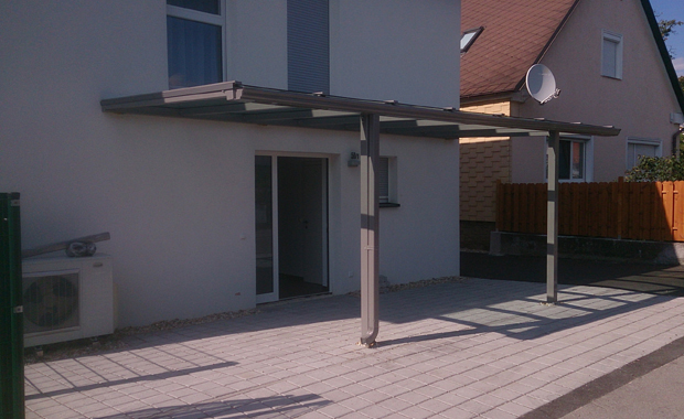 Ez a kocsibeálló Bécs mellett épült, és antracitszínűre szinterezett (porfestett) acél tartószerkezettel és ragasztott biztonsági üveg tetővel rendelkezik. Ennek a kombinációnak számos előnye van. Az acél tartószerkezet rendkívül erős és időjárásálló, így hosszú élettartamot biztosít az autóbeállónak. Az antracit szürke az egyik legkedveltebb szín.