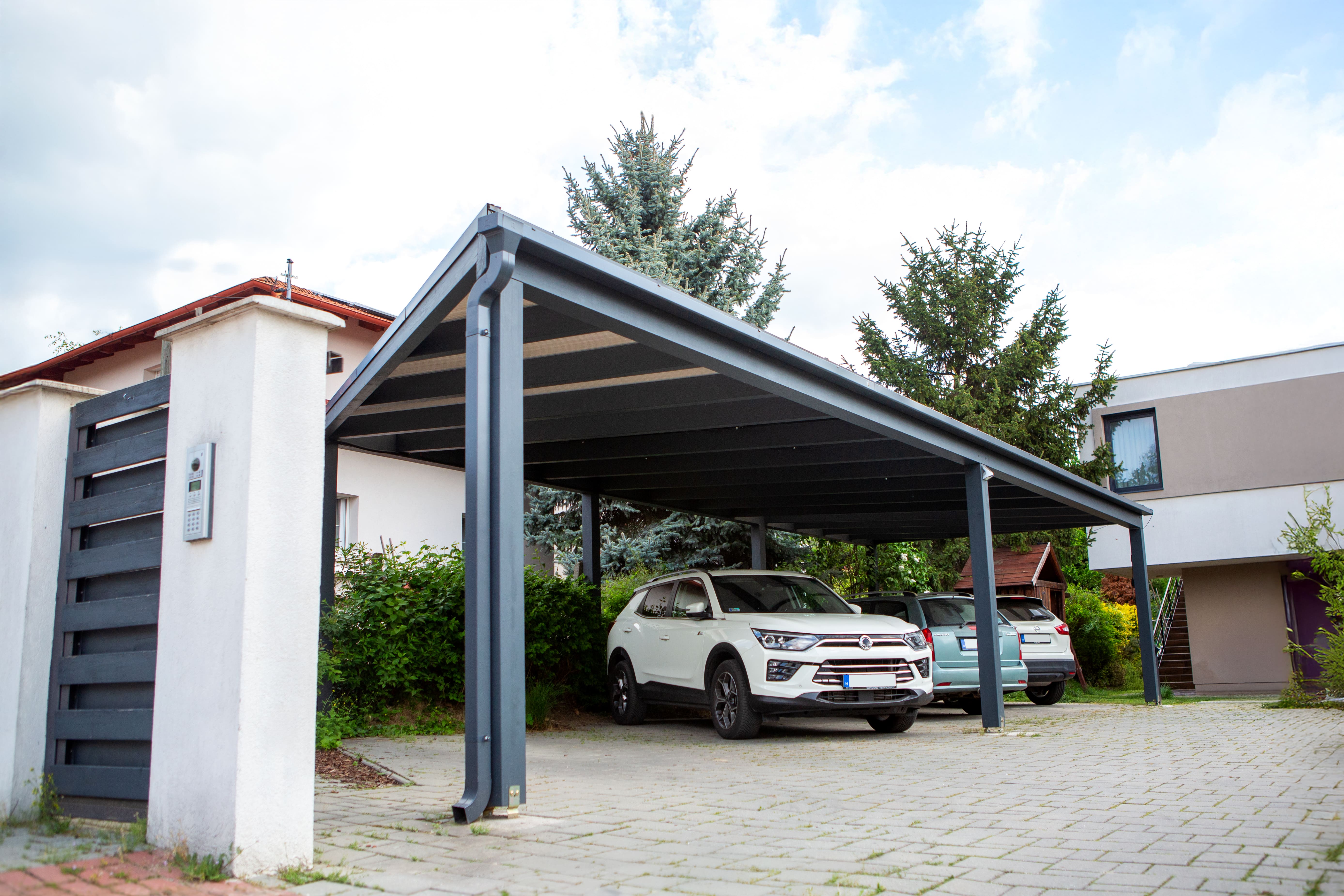 A csapadékvíz hatékony elvezetése minden kocsibeálló esetében alapvető szempont. Ennél a projektnél a szerkezethez színben és vonalvezetésben is illeszkedő, antracit színű, négyzetes csatornarendszert építettünk be. Ez a rendszer megbízhatóan vezeti el a tetőre hulló esővizet, így megakadályozza a szerkezeti elemek átnedvesedését és a beázást. A csatornák és lefolyók elhelyezése a beálló statikai és vizuális szempontjaihoz igazodik, így a vízelvezetés sem zavarja a mindennapi használatot, és hozzájárul a szerkezet hosszabb élettartamához.