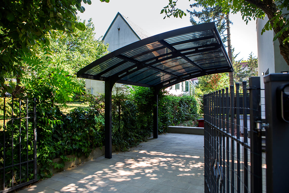 - Esztétikus megjelenés: Az antracit színű, modern kialakítású kocsibeálló tökéletesen illeszkedik a mai építészeti trendekhez.