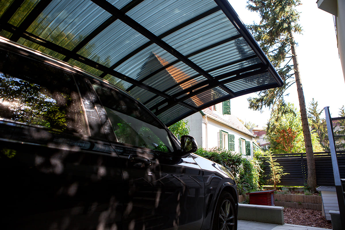 - UV-védett tetőpanel: A polikarbonát fedés megóvja autóját a káros UV sugárzástól, miközben természetes fényt enged át.