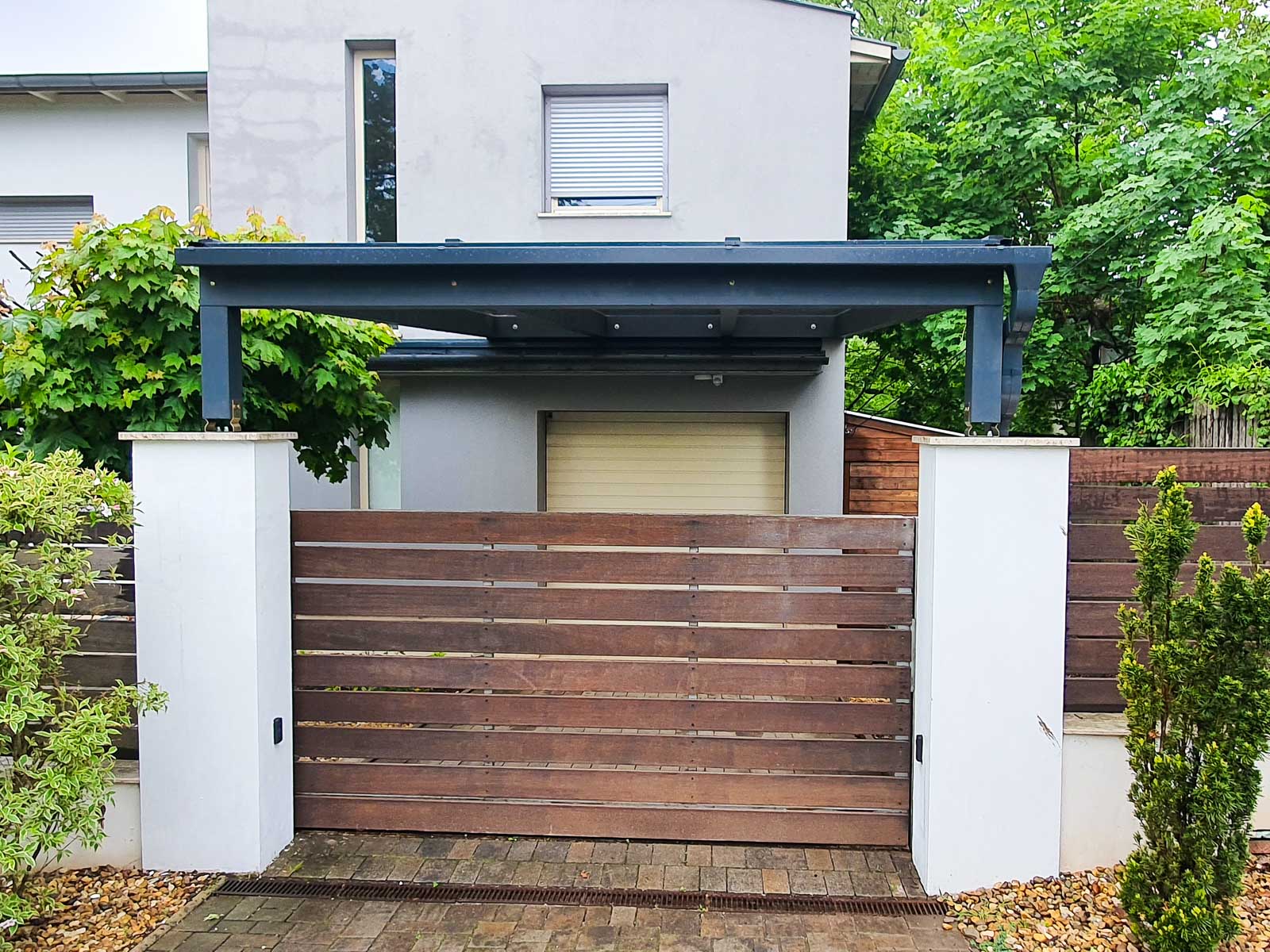 Kiemelten fontos volt az egyszerűség és a praktikum a kocsibeálló tervezésekor. Ennek eredményeként létrehoztunk egy olyan dizájnt, amely illeszkedik majd környezetébe, és kielégíti a mindennapi használat igényeit.
